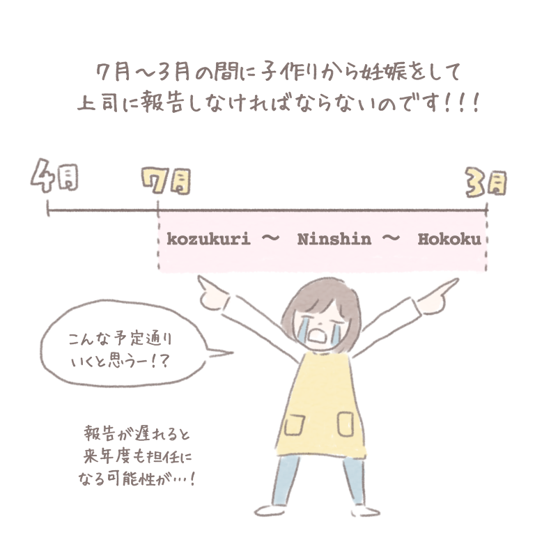 職場では若い女の先生が多いので妊娠するの被らないように…とか、3月までに妊娠報告しなきゃ…って考えたりとかすると、もう、本当にいつ妊娠したらいいのかわからなくなる😇